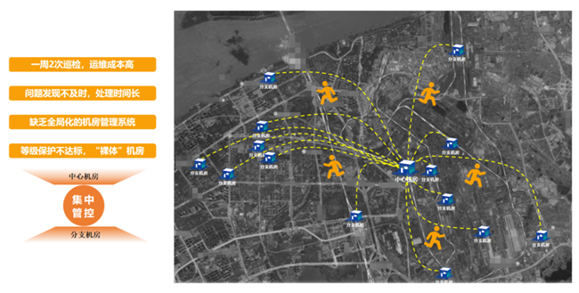 传统机房管理存在运维成本高、问题发现不及时、处理时间长、缺乏全局化管理系统、等级保护不达标等问题。以河南某用户为例,机房需要一周2次巡检,运维成本高昂;问题发现不及时,处理时间长;缺乏全局化的机房管理系统;等级保护不达标,成为“裸体”机房(图十三)。